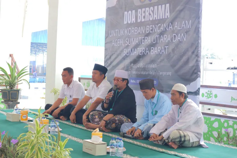 Tangerang – Lembaga Pemasyarakatan (Lapas) Kelas I Tangerang menggelar doa bersama sebagai bentuk empati dan kepedulian bagi masyarakat di Aceh, Sumatera Utara, dan Sumatera Barat yang tengah menghadapi bencana alam dalam beberapa hari terakhir. Kegiatan yang berlangsung di Masjid Baitussalam dilakukan seusai apel pagi pada Rabu (3/12) ini menjadi momentum spiritual bagi seluruh jajaran Lapas untuk mendoakan keselamatan dan ketabahan bagi para korban.
