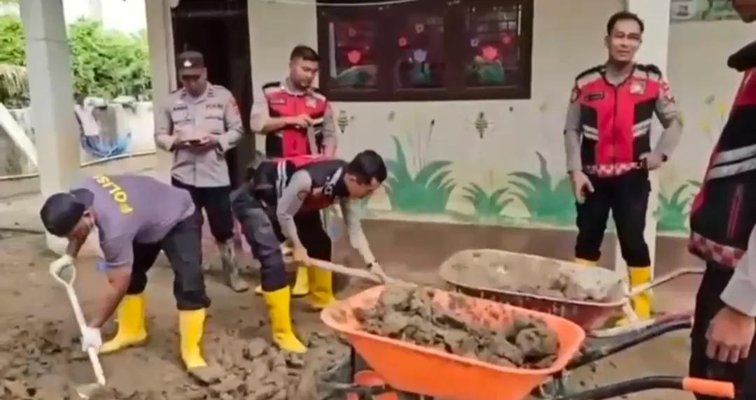 “Polri hadir bersama masyarakat untuk mempercepat pemulihan pascabencana. Gotong royong ini tidak hanya membersihkan lingkungan, tetapi juga menjadi upaya bersama memulihkan aktivitas sosial dan pendidikan warga,” ujar Kombes Pol Erdi.