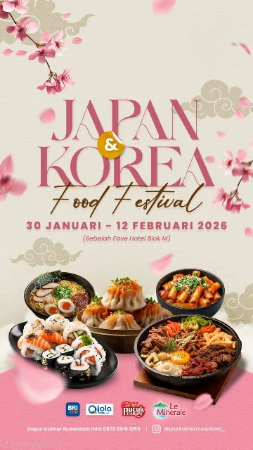 Festival ini dijadwalkan menjadi destinasi utama wisata kuliner di awal tahun 2026. Dengan beragam pilihan menu mulai dari ramen, sushi, hingga tteokbokki dan grill khas Korea, Japan & Korea Food Festival di samping Favehotel Blok M ini siap memanjakan lidah para pengunjung setiap harinya.