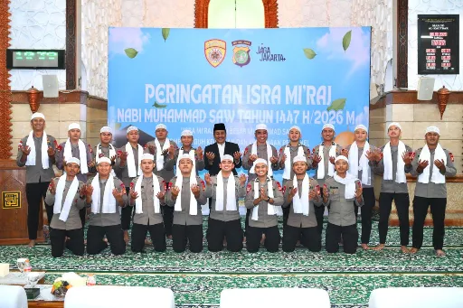 Jakarta – Tim Hadroh Batalyon A Pelopor Satuan Brimob Polda Metro Jaya mengiringi peringatan Isra Mi’raj Nabi Muhammad SAW yang digelar di Masjid Al Kautsar Polda Metro Jaya, Kamis (5/2/2026) pukul 08.00 WIB. Kegiatan tersebut dihadiri para pejabat utama (PJU) dan personel Polda Metro Jaya.