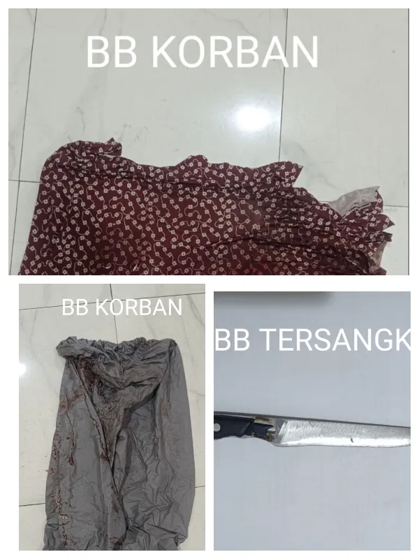 Dalam pengungkapan kasus ini, polisi turut mengamankan sejumlah barang bukti berupa satu bilah pisau, pakaian korban yang berlumuran darah, satu unit motor listrik, jas hujan, serta hasil visum et repertum.