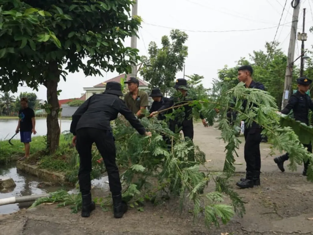 Kegiatan yang dimulai sejak pukul 07.00 WIB itu menyasar pembersihan jalan lingkungan, selokan, serta penataan pohon-pohon yang berpotensi mengganggu jaringan kabel listrik. Sebanyak 30 personel Brimob diterjunkan dan bersinergi bersama masyarakat untuk mengumpulkan serta membuang sampah ke tempat pembuangan yang telah disiapkan.