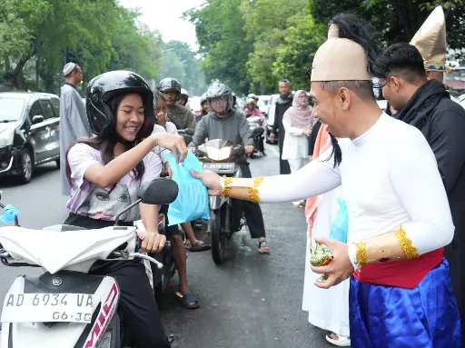 Surakarta – Suasana berbeda tampak di depan Rutan Kelas I Surakarta saat jajaran pegawai Rutan Surakarta menggelar kegiatan bakti sosial berbagi takjil kepada masyarakat, Sabtu (07/03). Dengan mengenakan kostum bernuansa Ramadan, kegiatan ini berlangsung meriah sekaligus penuh kehangatan dalam semangat berbagi di bulan suci Ramadan.