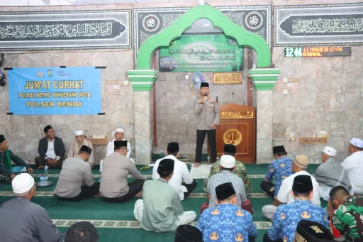 Tangerang – Suasana Masjid Al-Kamal di kawasan Benda, Kota Tangerang, tampak lebih ramai dari biasanya pada Jumat (17/4/2026). Selain dipadati jamaah untuk menunaikan salat Jumat, hari itu juga dihadiri Kapolres Metro Tangerang Kota Kombes Pol. Dr. Raden Muhammad Jauhari dalam rangka kegiatan Jumat Keliling dan Jumat Curhat.