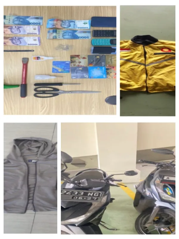 Dari tangan pelaku, polisi mengamankan sejumlah barang bukti berupa kartu ATM berbagai bank, alat ganjal berupa mika bening yang telah dimodifikasi, lem perekat, serta beberapa unit handphone.